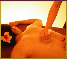 薬草オイルでアヴィヤンガを行い、温めた玄武岩(火山岩)で体の深部からほぐしていきます。玄武岩には鉄分やマグネシウムを多く含み、磁気療法の効果もあり、自律神経を整える効果があります。まさに地球の自然の恵みからエネルギーをもらうトリートメントです。
